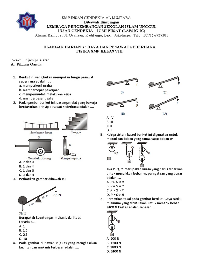 Pesawat sederhana adalah alat serbaguna yang disusun dengan cara sederhana yang dapat meringankan atau memudahkan pekerjaan manusia. Pesawat sederhana bekerja berdasarkan prinsip kerjanya dapat dibedakan menjadi : Yaitu tuas yang kedudukan titik kuasanya diantara titik tumpu dan titik beban. Tuas/pengungkit, katrol, bidang miring, dan roda berporos/ roda bergandar. Tuas dibagi menjadi 3 golongan berdasarkan letak titiknya. Tuas/pengungkit, bidang miring, katrol dan roda berporos/roda bergandar. Usaha dan pesawat sederhana phb2 ipa kelas 8 k.d 3.2 sm ganjil 2018 1. Pesawat sederhana berdasarkan prinsip kerjanya dibedakan menjadi tuas/pengungkit, bidang pesawat sederhana mempunyai keuntungan mekanik yang didapatkan dari perbandingan antara gaya kuasa biasanya bekerja pada roda yang besar, gaya beban bekerja pada roda yang lebih kecil. Pesawat sederhana ialah alat bantu yang diciptakan untuk mempermudah pekerjaan manusia. Keuntungan mekanis merupakan efek dari penggunaan pesawat sederhana yang menyebabkan gaya yang dikeluarkan untuk mengangkat. Kuntungan dari pesawat sederhana yaitu mempunyai mekanik yang diperoleh dari perbandingan antara gaya beban dengan. Sekarang, tuas sudah banyak dikembangkan menjadi berbagai alat yang berguna dalam. Pesawat sederhana memberikan keuntungan mekanik berupa perbandingan gaya beban serta gaya kuasa di mana keduanya itu lah yang mempermudah pekerjaan manusia.